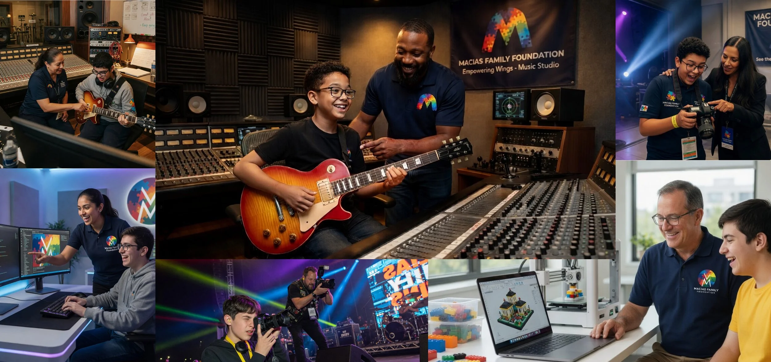 We pair them with skilled mentors who provide hands-on training, professional studio time, and the tools to bring their ideas to life — from making music to designing and engineering their own custom creations.